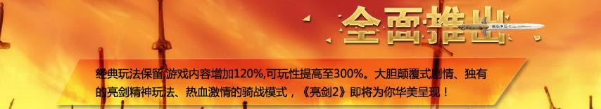 全新的颠覆式剧情,让经典不再是绝唱,让你的亮剑不再遗憾,完美再现。我们会加入亮剑中除李云龙和楚云飞外的戏分,比如说魏和尚,和尚将有一个全新的演绎。还有秀芹,亮剑2加入全新的更完善婚姻系统来配套这一场剧情。骑兵连也将浴火重生,英雄归来,反围剿之战不再是骑兵连最后的战役,骑马扬刀骑兵连因你而重生,骑兵连崛起!让我们一起续写骑兵连的续章。
